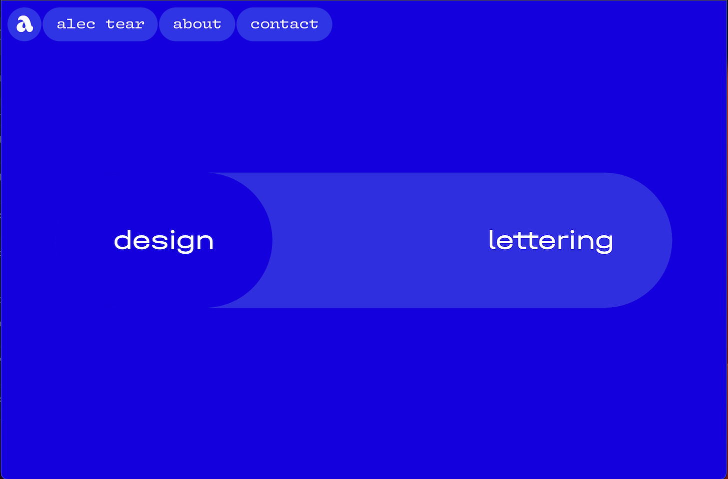 Generous bubbles. Single-word menu items. Lowercase. Everything so abundantly clear in one easy swipe of the eyes. Just like that, Alec has instantly achieved the one goal of this portfolio page: for users to become fully present with the tastefully curated RGB-colored projects on the page.