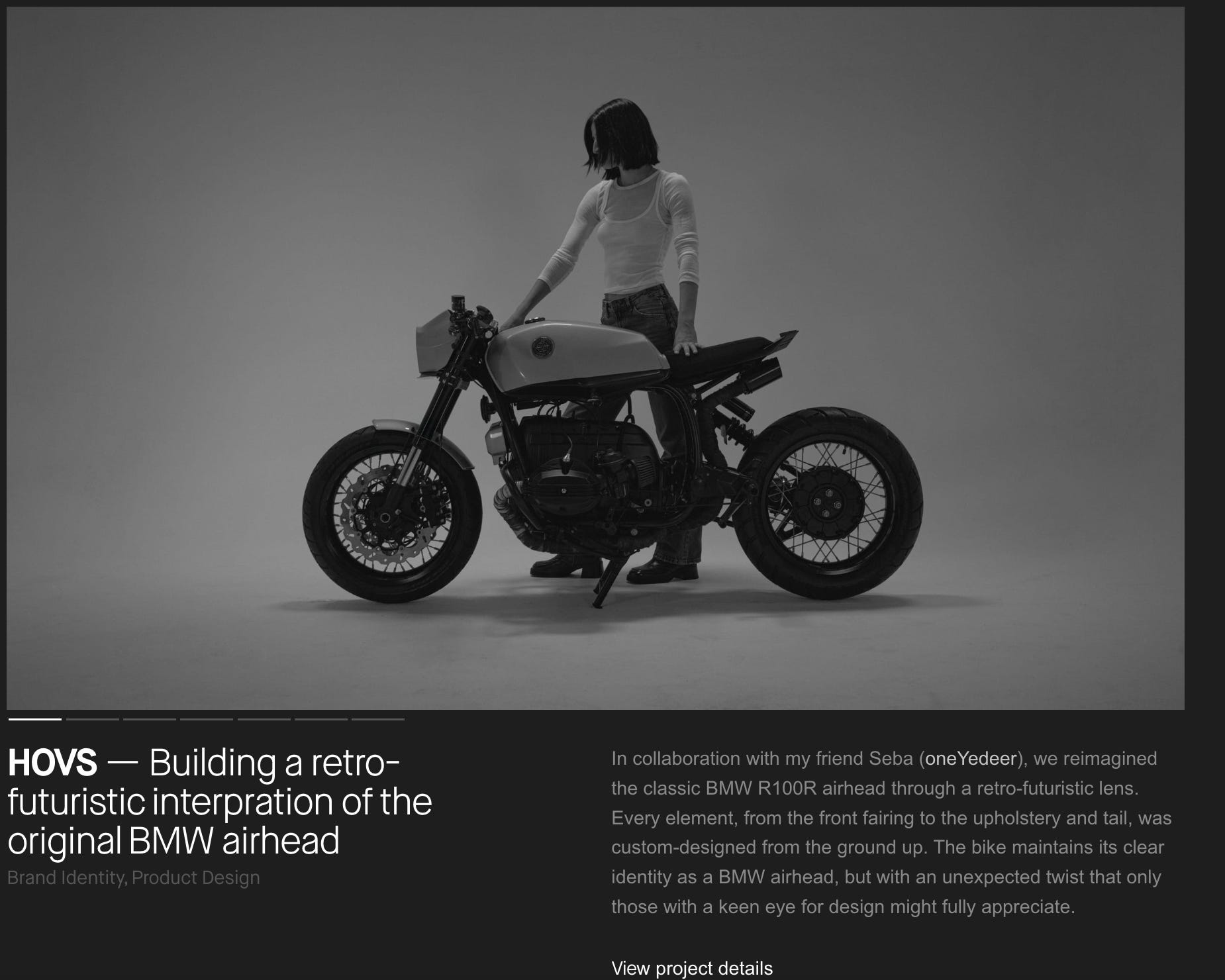 Breaking with conformity, Schneider has chosen to add (way) more than one line teasers. In fact, his entire case studies are all presented on the home page - complete with carousels.